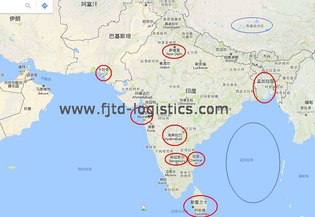 印度的Bombay(孟買)、Nhava Sheva(孟買新港/那瓦舍瓦)、Madras(馬德拉斯)——現(xiàn)在叫Chennai(金奈)、Calcutta(加爾各答)、New Delhi(新德里);巴基斯坦的Karachi(卡拉奇);孟加拉國的Chittagong(吉大港);斯里蘭卡的Colombo(科倫坡)等。以上港口為各個國家的基本港。