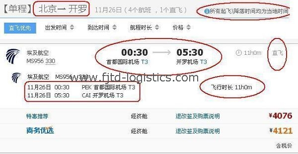 這里05:30指的是開羅當(dāng)?shù)貢r間,不是北京時間。開羅和北京所處時區(qū)不同,根據(jù)國際時差,開羅時間比北京時間晚6個小時。在北京起飛時間00:30,到達開羅的時間05:30。表面上看,好像北京-開羅只飛了5個小時。其實,不能這么計算飛行時間。因為00:30是北京時間,05:30是開羅時間,開羅時間又比北京時間晚6個小時,因此實際飛行時間應(yīng)為:(05:30-00:30)+6(時差)=11小時。