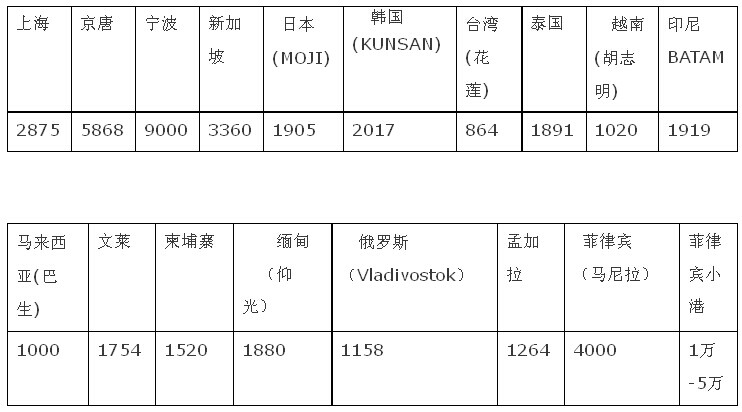 從上表對(duì)比可以見,上海港的2015年包干裝卸費(fèi)已趨合理,盡管比新加坡稍高,但是提供港方機(jī)械,裝卸速度大為提高。當(dāng)然,新加坡的裝卸費(fèi)是很貴的,比臺(tái)灣、韓國貴得多,是泰國、越南的2-3倍。