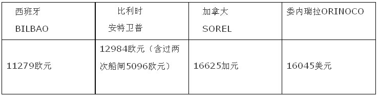 3萬多噸的船,靠下列歐美港口,拖輪費(fèi)如下: