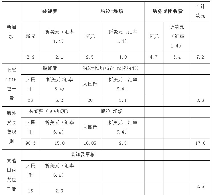 25噸重?zé)峋?,新加坡與上海港費(fèi)率對(duì)比: