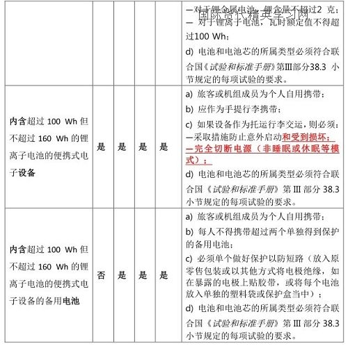 表1 便攜式電子設備及備用電池規(guī)定
