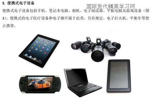 便攜式電子設備包括手機、筆記本電腦、相機、電子閱讀器、平板電腦及游戲設備(圖3)。便攜式的電子醫(yī)療設備和電子煙不屬于此類,另有規(guī)定。電子打火機、平衡車等禁止攜帶。