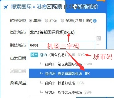 北京首都國際機(jī)場的IATA三字碼為PEK,上海浦東國際機(jī)場為PVG,廣州白云國際機(jī)場為CAN,洛杉磯國際機(jī)場為LAX,紐約肯尼迪國際機(jī)場為JFK,紐約紐瓦克國際機(jī)場為EWR,法蘭克福國際機(jī)場為FRA等。