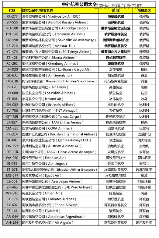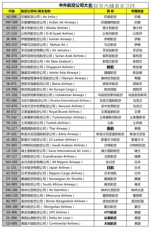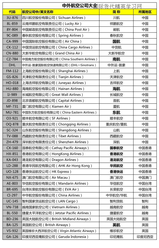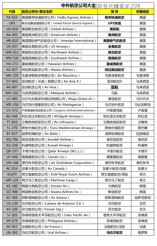 IATA代碼等4種常見空運(yùn)代碼例解(附中外航空公司大全
