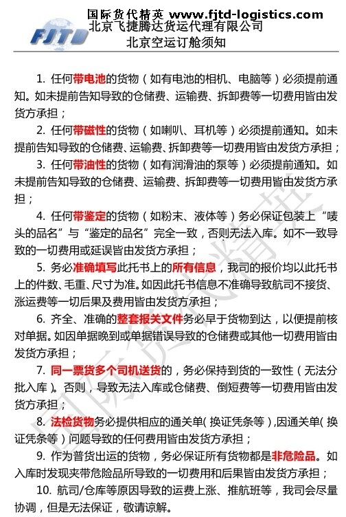 北京飛捷騰達(dá)貨運(yùn)代理有限公司 © Copyright: 2008-2018 fjtd-logistics.com 國際貨代精英學(xué)習(xí)網(wǎng)(BJFJTD)All Rights Reserved  京ICP備15044409號-1