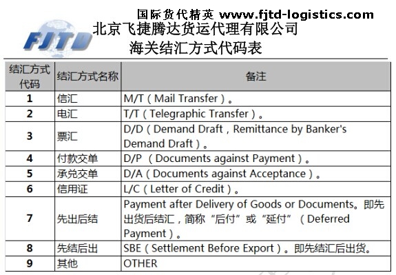 海關(guān)結(jié)匯方式代碼(信用證、電匯等)詳解