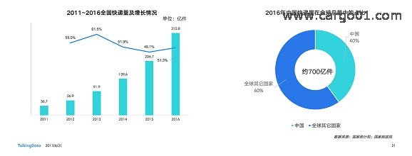 3)快遞行業(yè)持續(xù)高速增長(zhǎng),業(yè)務(wù)量占全球總量的四成