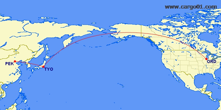 航線:PEK(北京)-TYO(東京)-ORD(芝加哥)