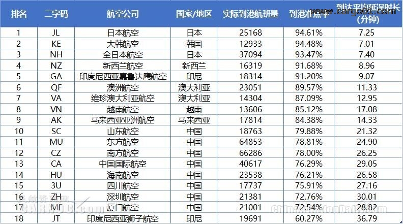 您現(xiàn)在的位置:首頁 >> 物流學(xué)堂 >> 空運(yùn)資訊>>2018年7月全球航司到港準(zhǔn)點(diǎn)率報(bào)告